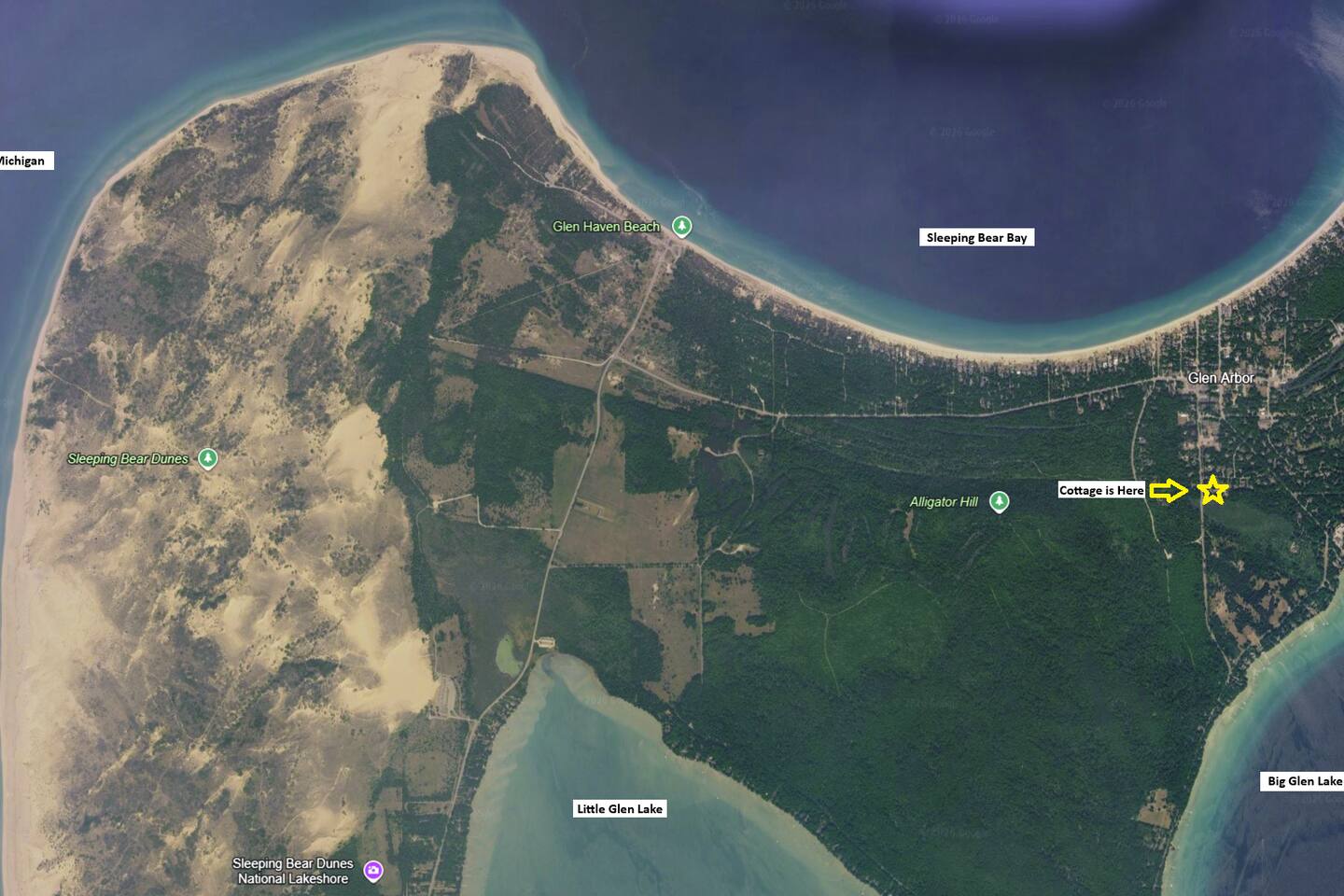 Ridge Top is located 1/3 mile from downtown Glen Arbor. Ridge Top is part of Cranberry Ridge, 8 acres of natural setting with four individual cozy cottages.