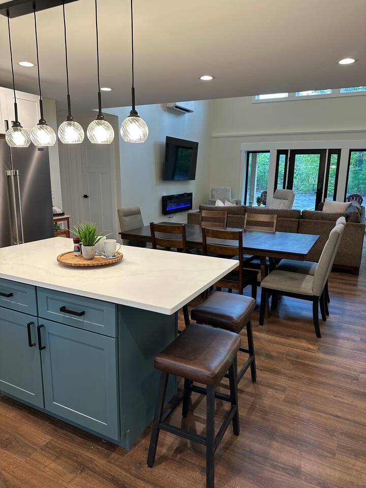 Cranberry Lodge is a modern retreat, perfect for exploring Glen Arbor and Sleeping Bear Dunes. Designed for comfort and entertainment, it’s the perfect place to gather with family or friends to feel at home. Walk/bike to Lake Michigan, local restaurants, wineries, shops, the grocery store, and miles of scenic hiking/biking trails. After a day of hiking, unwind in the private hot tub beneath the stars. 1/2 mile from Downtown Glen Arbor 8 min drive to Sleeping Bear 35 min drive to Traverse City